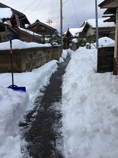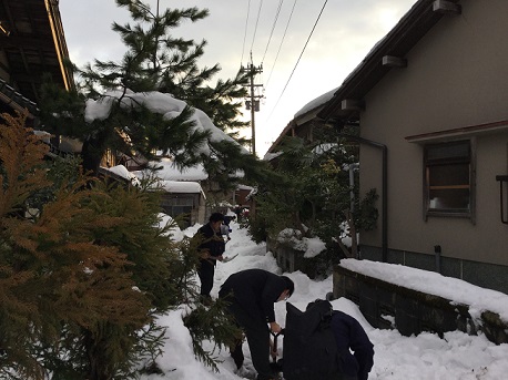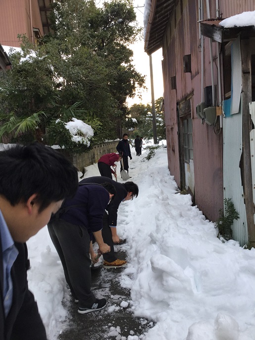 大場町の町内で、細い路地を野球部とJRC部で、除雪しました。