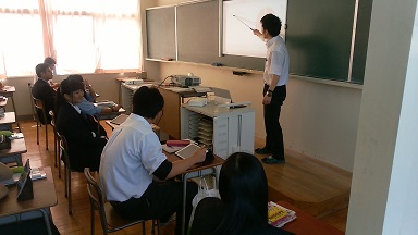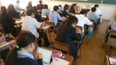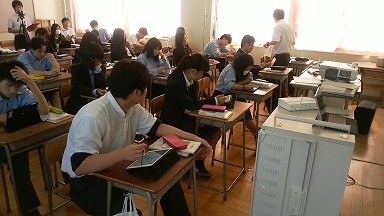 タブレット端末活用授業 iPadを使い、生徒と先生がやりとりします。
