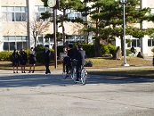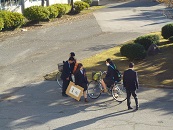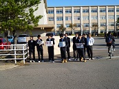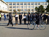 あいさつ運動2日目です。公安委員による自転車ステッカーのチェック、施錠徹底の呼びかけも行いました。