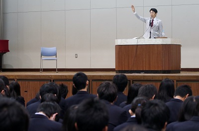 篠井英介さん(第7期卒業生)の講演会「夢をもつことの大切さ」を開催し、保護者・地域の方々にも多数参加いただきました。舞台・テレビ・映画で活躍中の先輩から大きなエネルギーをいただきました。ありがとうございました。