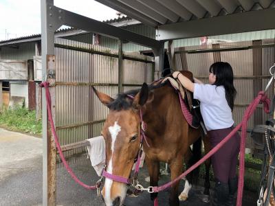馬への感謝も忘れず、乗り終えたら馬のブラッシング等のお手入れをし、