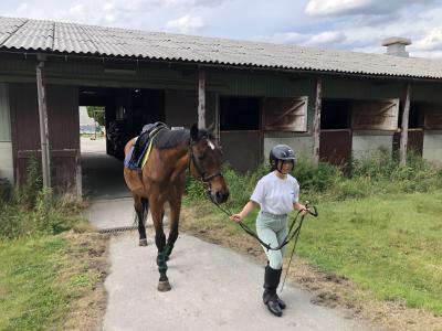 ↑(自分で馬をひいて、いざレッスンへ)