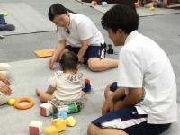 7月3日(木)3年生の「保育基礎」の授業で、かわいらしいお客様をお招きし、「親子交流授業」を行いました。