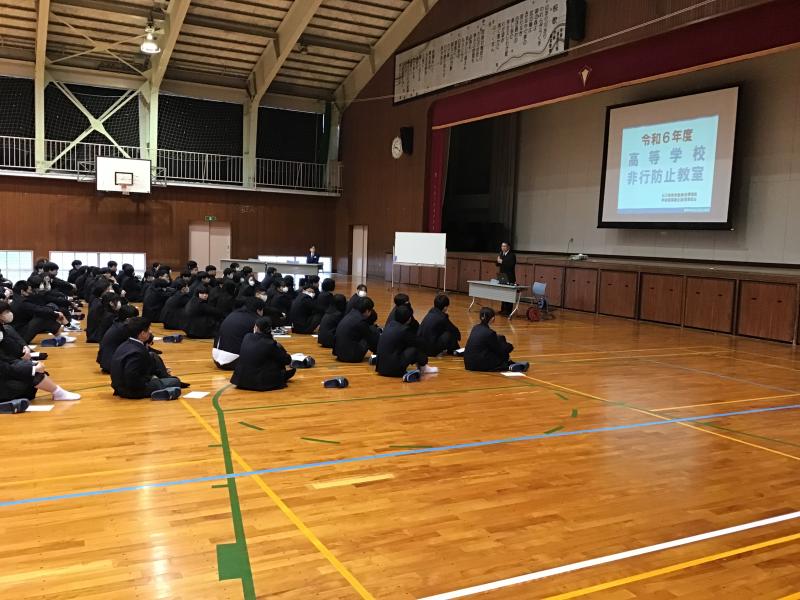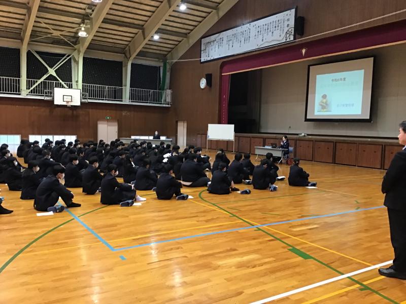 4月9日(火)本校体育館にて、金沢東警察署と石川県教育委員会から講師をお招きし全校生徒対象に「非行防止教室」が行われました。
