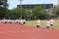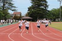 素晴らしい晴天に恵まれ、どの生徒もいつも以上の力を発揮しクラスメートや頑張っている先輩・後輩など学年性別関係なく大きな声援を送っていました。最後は、全員参加のクラス対抗リレーを実施し先生チームも参加しました。