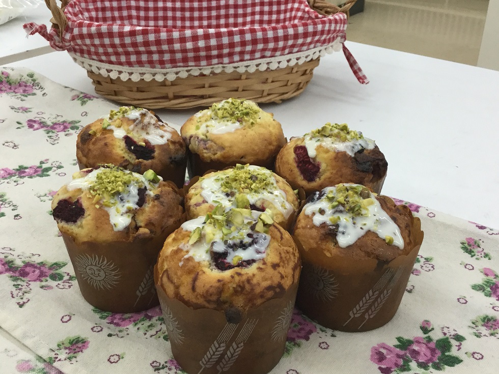 今日は、「ラズベリーとホワイトチョコのマフィン」を作りました。