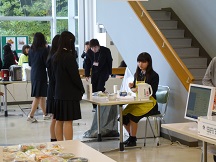 第26回全国産業教育フェア石川大会が開催されました。6日、金沢学院大学で行われた全国高校生クッキングコンテストの体験・展示コーナーにハンドメイド部・茶道部が参加し、加賀棒茶によるおもてなしや「水引で作る箸置き体験」コーナーなどの運営を行い、会場を訪れた大勢の方々に喜んでいただきました。
