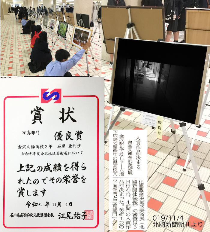 活発に写真撮影し,完成した力作を出展上限の9作品にして,先の5/27から6/2まで開催された石川県高校総合文化祭美術展に提出することができました.