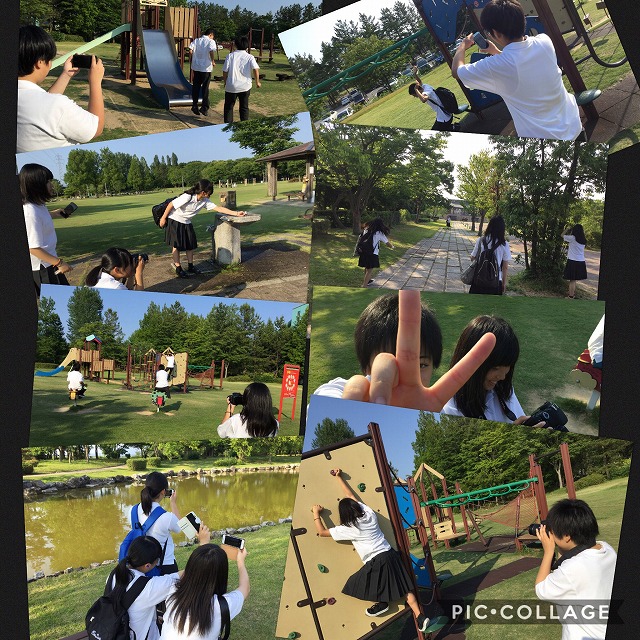 昨日の部活動は,文化祭に向けての作品作りの第一歩,撮影会です.近くの公園にいってみんなで撮影しました.個人だとどうしても風景写真が多くなるのですが,たくさんで撮影すると,自然と遊びの要素が入ってきます.作品制作,つまり創造のなかにこそ,ほんとの遊びもあるのでは?みんな真剣に遊んで(笑)それを撮影しあいました.次回は,撮影した作品のレタッチです.