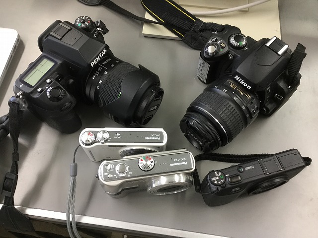 以下写真は,現在使用可能なカメラです.もう少し増えると,生徒に長期貸し出しができる,カメラに慣れることができるな,と考えています.