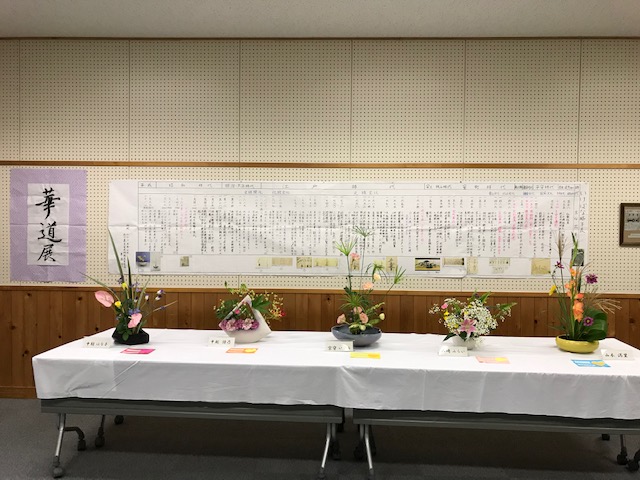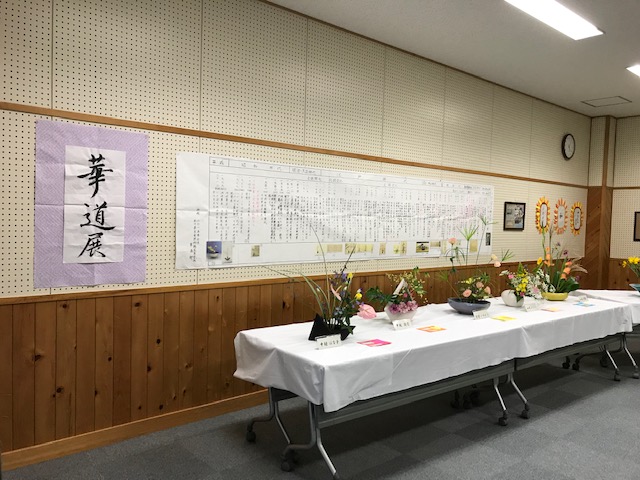 今年の華展では、部員数が少ないためどうなるか。。。と思っていましたが、華道体験コーナーを設けることで華やかさが増しました。