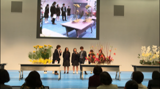 〇池坊「花の甲子園」の北陸大会は昨年は金沢で開催され、もてなしドームで行われた大会に、本校生徒3名も参加しました。