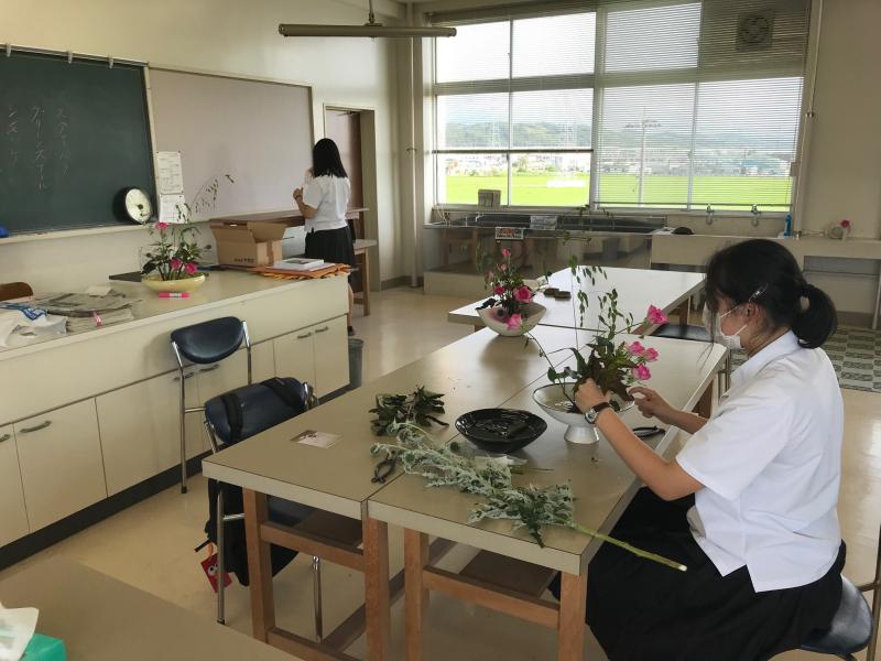 今年は富山県で北陸大会が開催されるので、本校は「リモート枠」での参加となります。生徒3名によるパフォーマンスを30分の動画を撮影して提出します。これから生ける花のプランを練り、パフォーマンスの練習をします。