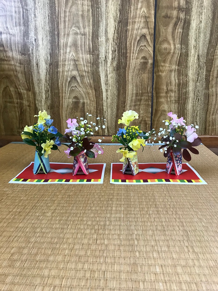 華道部ではお花のお雛様を作りました。