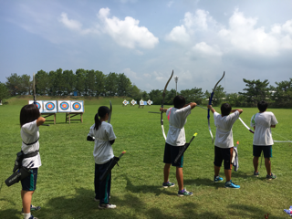 アーチェリーは70m先の的をめがけて計72本射ちます。
