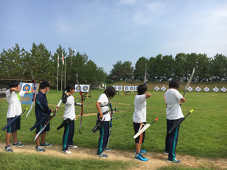 韓国の高校生代表を招いた交流戦に北信越地区代表として男子1人、女子2人が出場。今から70mラウンドです。ベスト記録を目指して頑張ります‼