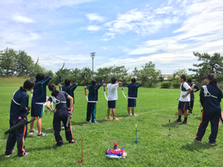 頑張って練習して、先輩たちと一緒な距離70mが早く射てるようになるといいね。