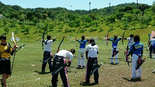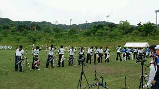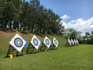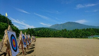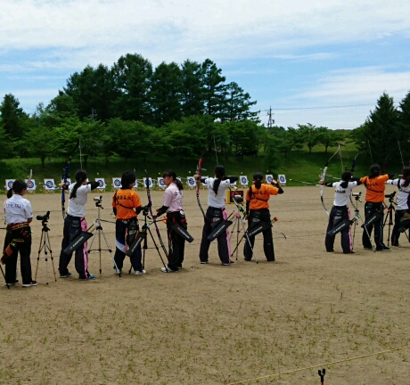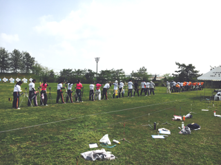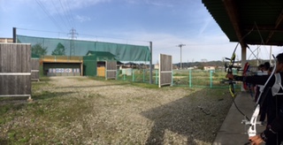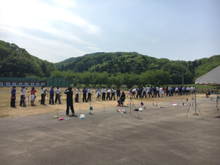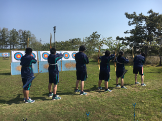 16日(土)は天気がよく、学校の敷地内にある30mの射場で練習をしました。