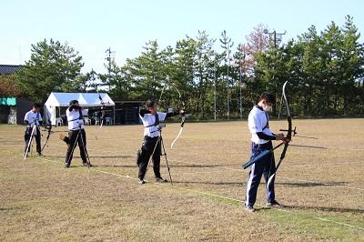 今日は、午前は会場の設営、午後は弓具検査と公式練習を行いました。天候にも恵まれ、みんな、明日からの試合に向けて、コロナ対策に十分に配慮しながら、頑張りました。明日3日は団体戦、明後日4日は個人決勝トーナメントです。普段の練習の成果を出せる様に、頑張ります!
