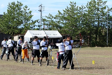 秋晴れの中、アーチェリー部は県秋季大会に出場しました。