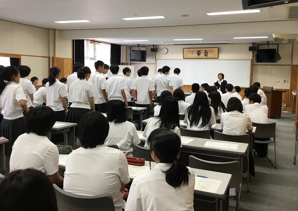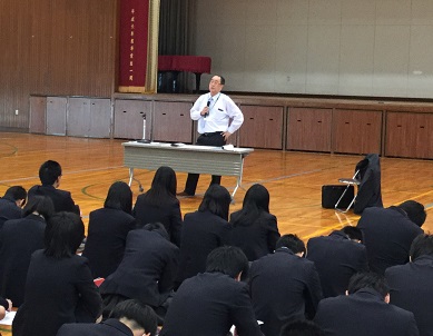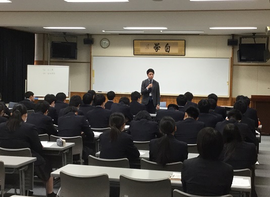 5限、43名の就職希望者を励ますために、激励会が行われました。全員が正装で臨み、石倉校長から励ましの