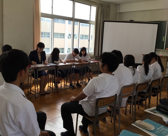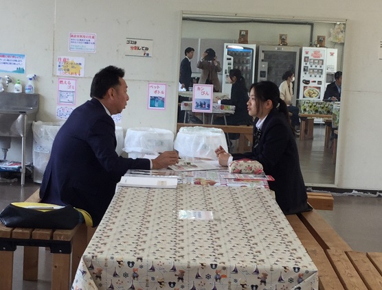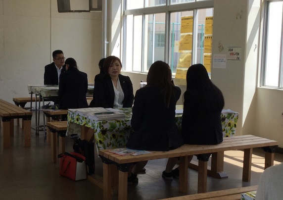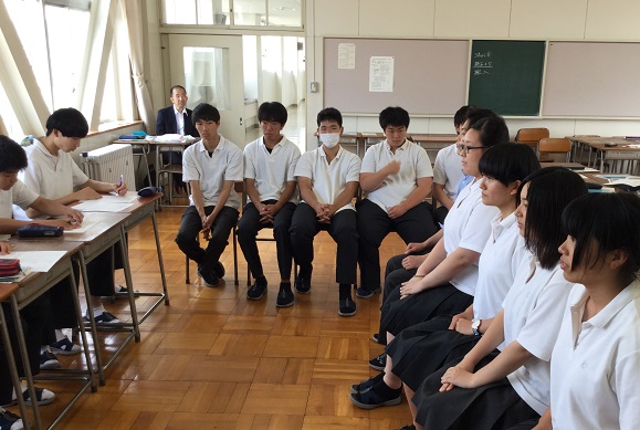 取締役や市議会議員の方々で、忙しい中を本校生徒のために協力していただきました。生徒たちは、緊張しながらも