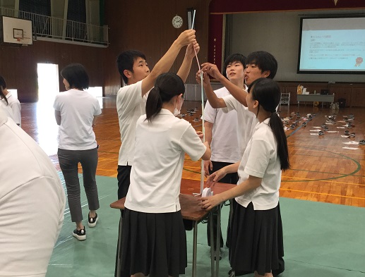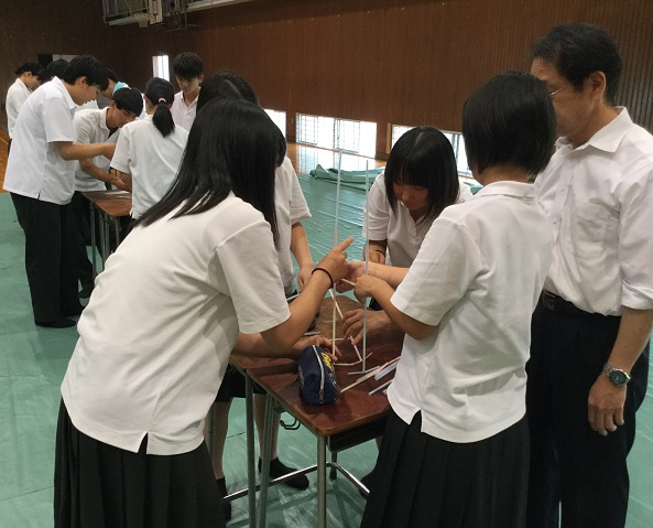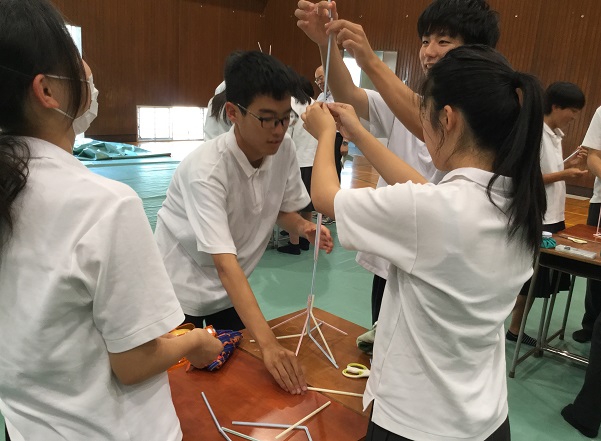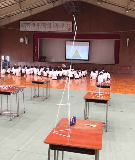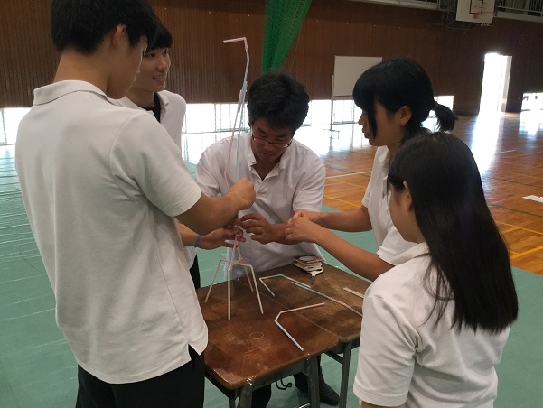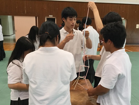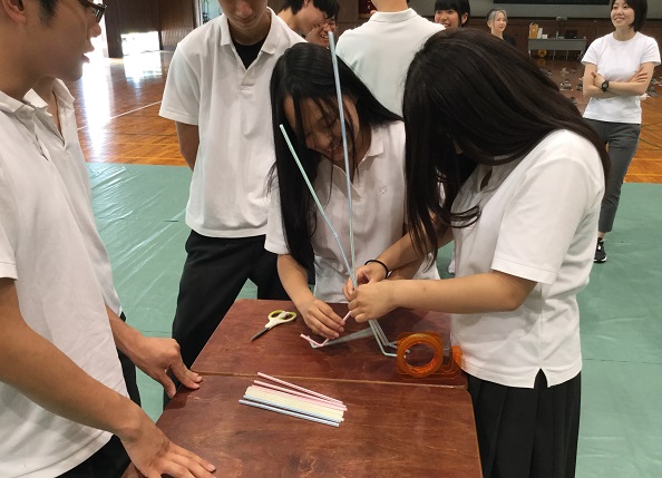 「学生と社会人の違い」等を学び、「グループ活動によるストロータワー製作」に取組みました。