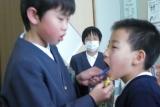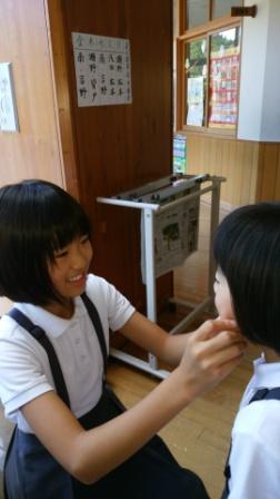 歯みがき先生で、互いが学び合うとりくみをしてきた成果なのか、自分たちは歯みがきチェックをできると思っています。初日、どのような状況かをみていると、ていねいに歯みがきチェックをしている姿がありました。