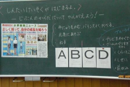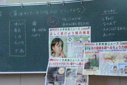 1時間目に健康診断についてお勉強して、目標づくりをしました。その目標を意識しながら、いろいろな検査を受けていくことになります。