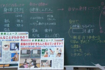 8日から定期健康診断が始まりました。8日は身長・体重・座高を測定し、視力・聴力も検査しました。色覚については希望をとって実施しようと思っています。