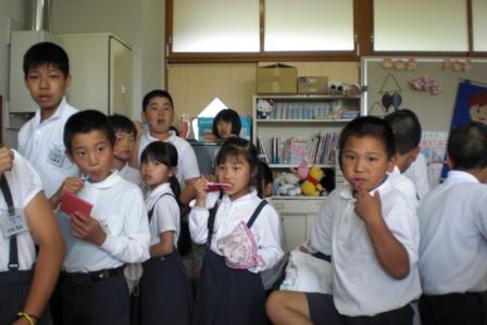 3時間目には手洗い指導と歯ブラシ点検を体育館で全員で行いました。4・5年生は何回も昨年度勉強したおかげで、歌を歌いながら楽しく受けていました。今年も手洗いがんばろうね。