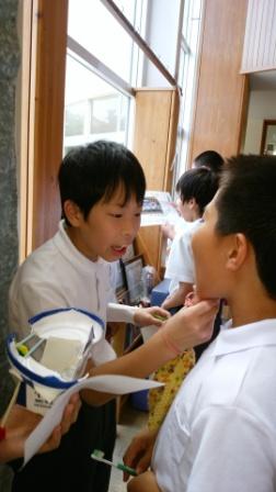 9月9日・10日、保健委員が自主的に歯みがきチェックを企画して、自分たちで実行しています。