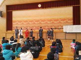 大きな声で歌う保健委員といろいろもめながらもかわいく踊る保健委員に、町野の子どもたちにかぜに負けない予防方法が理解できたことを願わずにいられません。