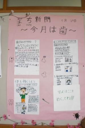 保健委員会には4つの活動班があります。劇班、新聞班、掲示物班、先生の手伝い班です。劇班は現在は2つめの劇に取り組んでいます。掲示物班はクイズをつくりました。新聞班がなかなか出来なかったのですが、できあがったものはとてもすばらしものになりました。こつこつと仕上げた成果です。保健室入り口の掲示板に貼ってありますので、ご覧下さい。