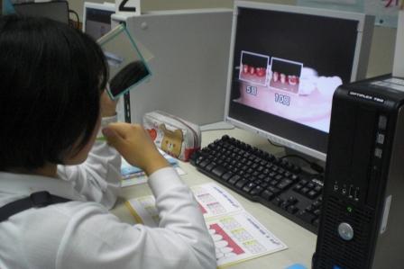 3年生13名と口の中の勉強をしました。13名は「いい姿勢をしましょう」の号令がいわれても、なかなかできずに始まりかけました。そこでストップし、座っている時のいい姿勢の図を意識させると、すぐによい姿勢になりました。