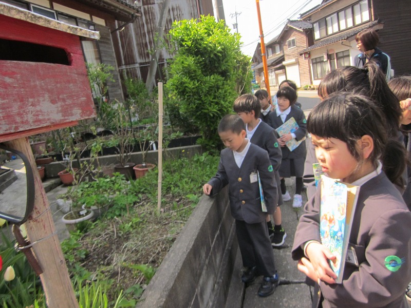 4月19日(木)1,2限目に町探検に出発した2年生。「出会った人」「見つけた物」に興味津々、好奇心一杯でした。出会った方から町の歴史が載った本を見せていただき、色々と教えていただきました。2年生は熱心に学んでいました。ありがとうございました。