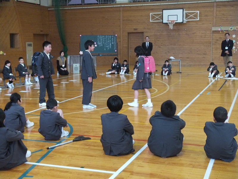 5・6年生は寸劇で、学校のきまりやマナーなどを教えてくれました。