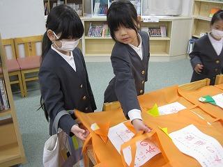 中身は新聞紙に包まれていて見ることはできません。冬休み中に借りた本を返した人から選ぶことができます。