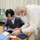 一人一人手を取って教えてくださいます。彫刻刀で彫る版画とは全然違ってむずかしい!