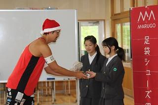 校医でもある、地元 粟倉医院の大石先生とのご縁で、プロビーチバレーアスリートの小島利治選手が、株式会社丸五(MARUGO マルゴ)さんの足袋シューズをプレゼントしてくださいました。