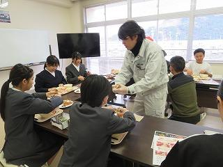 自分でさばいて食べるのは初めての児童も美味しくいただきました。