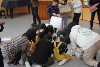 今日は、まちの保育園と南志見保育所の年長さんが町野小学校に遊びに来てくれました。この日のために、1年生の2人は出し物の準備をし、2年生は出し物の運営をしてくれました。1つ目の出し物は「おみせやさんごっこ」でした。たくさんのおみせがあり、みんな楽しむことができました。2つ目の出し物は「おにごっこ」です。1年生の2人が詳しいルールや優しいタッチの仕方まで丁寧に教えてくれました。年長さんたちは、話を聞く時はしっかりと聞き、遊ぶ時は思い切り遊ぶ姿が見られました。4月から同じ小学校の仲間として頑張りましょう!