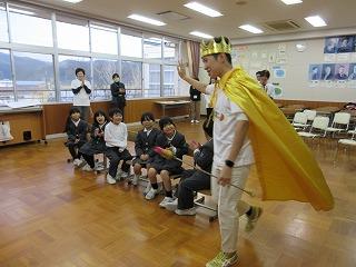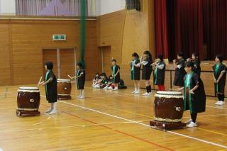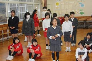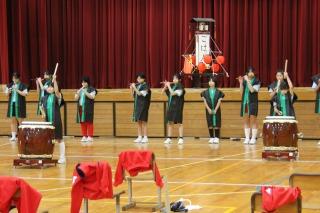 たくさんのお客様や保護者の皆様を迎えて「6年生を送る会」が開かれました。各学級が6年生の卒業を祝って,劇や音楽などの出し物を披露しました。子供たちからは,緊張した様子も見受けられましたが,発達段階に応じてがんばっている姿を見ることができました。限られた時間内での準備でしたが,どの学年もそれぞれのカラーが反映した出し物でした。また,トランペット鼓隊の引継ぎでの「かっこいいツイスト」の演奏では,これまでに6年生のアドバイスのもと積み重ねて来た練習の成果を堂々と演奏する新メンバーの姿に,頼もしさが感じられました。