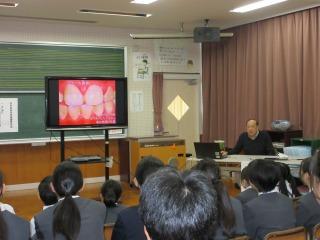 学校公開3日目は、午後から学校保健委員会。学校歯科医の廣江雄幸先生に『口はいのちの入口』と題してご講演をいただきました。