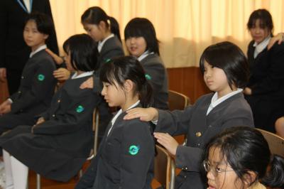 その後、卒業した6年生も加わり、離任式が行われました。校長先生をはじめ6人の先生方が異動されることになりました。先生方のお話を聞いている内に子供たちの目から涙がこぼれした。お別れはさびしいですが、それぞれが新たな一歩を踏み出していく機会となりました。