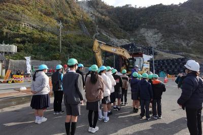 刀祢建設さんのコーディネートで、道路復旧工事の現場見学をさせていただきました。