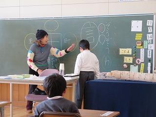 島根県出身の詩人・エッセイスト、里みちこさん。PTA会長さん・輪島市の読書ボランティアの西浦貴子さんがご縁をつないでくださり、お話会が実現しました。言葉や漢字のなりたちのおもしろさを語ってくださいました。