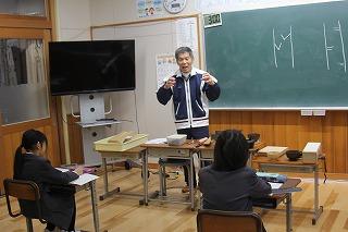 4年生が、町野町在住の輪島塗職人、惣田登志樹(そうだとしき)さんに伝統工芸輪島塗の仕事について教えていただきました。