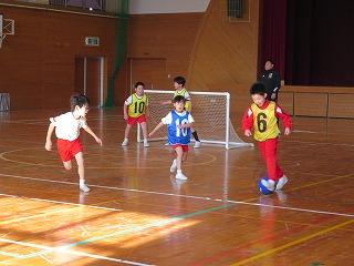 次の日、休み時間はいつもドッジボールばかりだった子どもたちが、体育館全面を使って、男女交じってサッカーを楽しんでいました。