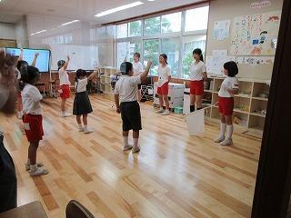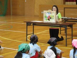 家にある鍋やカトラリーなどの台所用品、茶碗などの陶器、ぬいぐるみなど、使わずにおいてある物が海外で喜ばれ役に立っているということや、自分たちが支援していただくだけでなく、海外の方の助けにもなっていたというお話を、子どもたちは興味深そうに聞いていました。本をいただいたお礼に、五千人の祭典で踊る予定だったダンスを披露しました。